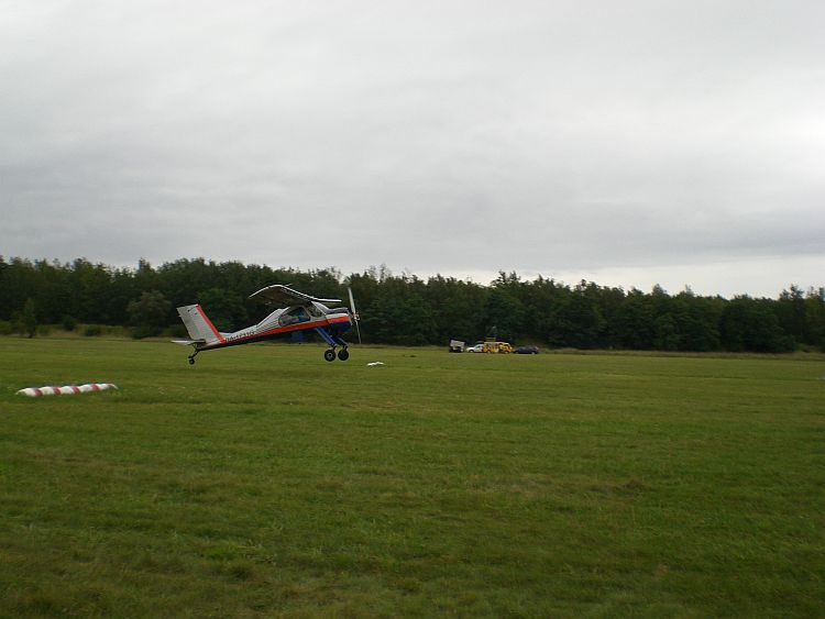Die nächsten Tage gaben dann fliegerisch wieder etwas her, und am 12. August hatten wir als Highlight eine Wilga – eine polnische Motormaschine mit Sternmotor vom Nachbarflugplatz zu Besuch. Diese Maschine ist hervorragend für den Flugzeugschlepp geeignet und so ergab sich für Max und Eberhard die Gelegenheit, ihre Flugzeugschleppberechtigung zu erwerben. Hierfür sind jeweils mindestens 5 Flüge mit und 5 Flüge ohne Fluglehrer zu absolvieren.